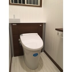 老朽化しトイレ空間をスッキリさせたいとご相談頂き、いくつかのトイレをご紹介致しました。 中でも、給水管やコードを隠しスッキリとするリフォレを気に入って頂き新調しました。 ウォシュレットの隙間など手の届きにくい汚れにお困りでしたが、リフォレはホコリが溜まりやすいタンクの後ろをキャビネットで隠しているので、手の届きにくかった部分も拭くだけお手入れ簡単になりました。 「シンプルなデザインですが、キャビネットはしっかりと収納スペースがあり快適なトイレ空間になった」とのお声を頂き、お喜びいただきました。