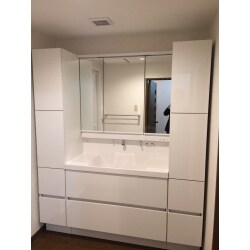 浴室をリフォームするので、隣接している洗面台も一緒にリフォームしたい、施工前と同じく収納たっぷりの洗面台にしたい、とのご要望でした。