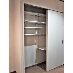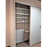 新しいお家でしたので、床を触らぬよう上吊り引き戸で、棚は可動棚で、ご提案いたしました。