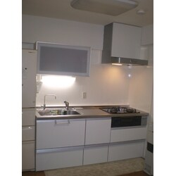 (旧東京ガスリモデリング株式会社での事例です。)システムキッチン取付とキッチンパネル貼りの工事でした。小柄なお客さまに合わせて、吊戸棚を止めて手の届く位置にフラップウォールをご提案しました。下部は全て引出しなので収納量は以前と変わりません。整流板付きのレンジフードやキッチンパネルは、コンロまわりのお手入れが楽になったと喜んでいただいて好評です。