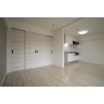 押し入れは折れ戸のクローゼットとしました。 また、リビングとの境の建具は高さ2300のハイドアとしました。圧迫感がなく、広がりのある空間となりました。