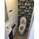 タンクレス便器を設置。別に手洗器を新たにつけました。クロスも貼り替え、壁はアクセントクロスで雰囲気が変わりました。