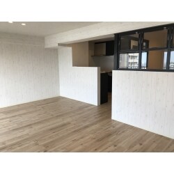 オープンなLDKにリノベーション。 キッチンとの繋がりも感じられます。