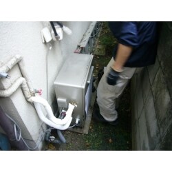 予算を抑えたいので、洗面サイドキャビネットはそのまま利用したい。 給湯器はエコジョーズ型にされたいとのご要望でした。