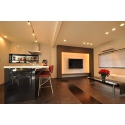 スクエアな空間だったので色々なシーンを盛り込みレイアウトさせていただく事が出来ました。弊社オリジナルホームシアター、カフェキッチン、大開口のフルハイトドアがポイントになりすっきりとした快適空間になりました。 ありがとうございました。
