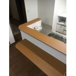 キッチンとリビングの間にある仕切りを新たに作り直し、リビング側を広くリフォームいたしました。また、リビング側の壁掛け机も新しいものにリフォームしました。