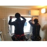 樹脂窓のFIX窓と縦辷り出し窓が並んだ窓になりました。 しっかりと換気もでき、明るさも保つことができます。 壁掛けの浴室暖房機の効きもグンと良くなることでしょう!
