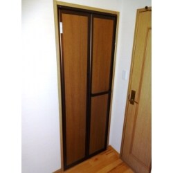 折れ戸タイプにすれば、稼動域も小さくなるため、他のドアと干渉することなく便利ですよ。また、現状のドア枠の内側に新しいドアを設置する工法の商品を選べば、既設の壁を壊す事もなく、工期も短くて済むので、おススメです。