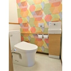 トイレの全面改修を提案しました。 手洗い器はTOTOのスリムタイプⅭを提案。 出入り口も開きから引き戸の提案をさせていただきました。