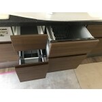 数年前にフルリノベーションされた当物件。 パナソニックLクラスのシステムキッチンが入っていました。 食洗機を新規取付するにあたり、システムキッチンと同じLクラスのシリーズから食洗機を選定。 左右の引出しに合わせて、食洗機の中央にも飾り線が入っていることでスッキリと見えます。 ご予算に見合う場合には、キッチンのメーカーとシリーズを揃えることをオススメします!