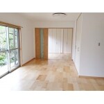 8帖のリビングは隣の6帖の和室と統合し、広いリビングとなりました。 また、もう一つの和室は洋室に変更しています。 水廻りの配置は変わっていません。 お部屋の開き戸は、空間を広く使えるように引き戸を採用しました。