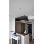 リフォームのアイデアとして、コンクリートに直接クロスが貼られており、天井の高さは高いのですが照明の位置やモノを選ぶこともあり不便さがありました。 これを間取りに合わせてダクトレールを組み、照明が欲しい箇所に取り付けられるようにいたしました。