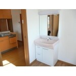 キッチンからの導線も良くなり、明るい洗面スペースになりました。