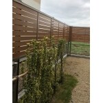 ・お好みの木目調で、多段柱を利用する事で施工時には高さの調節ができるセレビューフェンスを設置する事で、防犯対策やプライバシーの確保にも役立ちます。