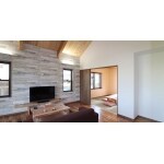 壁・天井に無垢材を貼ったリビング