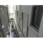足場を組んで、洗浄後に外壁の表面の塗膜が取れてしまった部分が多々ありました。この不具合部分は、塗装ではあまり長持ちさせることが出来ないため、費用は掛かりますが、悪い部分を新しい外壁に貼り替えることをお勧めいたします。