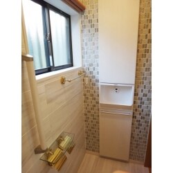 タイルで仕上げ、アクセサリーもゴールドで統一し、高級感のある空間にしあげたい。