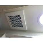 元々、ユニットバスと脱衣所の2室換気でした。 ユニットバスの換気扇の力に引っ張られるようにして、脱衣所の空気を吸いだす仕組みです。 今回の工事では、それぞれにモーターをつけたため、換気の力が2倍に! もう埃が落ちてくる心配はありません。