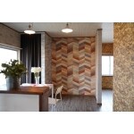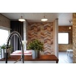 ヘリンボーンタイルが印象的なブラウンキッチン