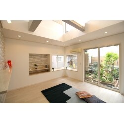 間取りを変更し、リビングを大空間に。さらにリビング上部を吹き抜けにすることにより、光がふりそそぐ明るい空間となりました。