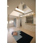 間取りを変更し、天井を取り払い光あふれる大空間のリビングに仕上げました。 天井が高いと、視覚効果で実際の広さ以上に広々と感じるため、とても開放的な空間となります。