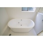 白で統一した清潔感いっぱいのバスルームになりました。浴槽の形がとてもユニークです。