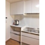 奥まで収納できる引出しタイプのシステムキッチンに取替え、並びで家電収納を設置。ガス栓を新設してガス炊飯器も一か所にまとめました。 壁は汚れをさっと拭き取れるキッチンパネルを貼り、整流板付のレンジフードに取替えて、お掃除も簡単になりました。