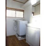 洗濯機設置部分が高い洗濯機パンを設置し、排水管の接続も掃除も容易になりました。 床仕上げ材は木目調のクッションフロアーで、耐水効果も上がりました。