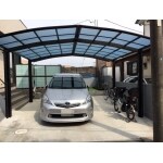 YKKAPのレイナポートグランは豊富なカラーバリエーションと、風や雪に強い頑丈な設計となっており、人気の商品です。今回お選び頂いたカラーは、本体がカームブラック、屋根が熱線遮断ポリカーボネート板のアーズブルー色(マット調)です。