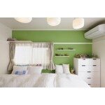 施工後の寝室の様子です。 クロスの張替え・フローリングの張替え・廻縁等の塗装、エアコン交換などを行っています。