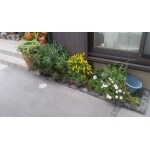 コンクリートと花壇スペースの境に小舗石を使い、ちょっとした花壇を造りました。