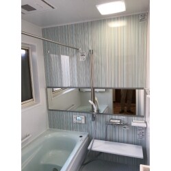 - ワイドミラーで奥行きを持たせた浴室空間になりました