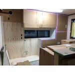 稼動式の吊戸棚が、使いづらい。キッチンは対面式にして 収納を増やしたい。外から中の様子がわかってしまうので目隠ししたい。
