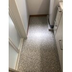 洗面化粧台・脱衣所(クロス・CF)のリフォームを行いました。左側には収納ボックスも追加し、収納力抜群です!洗面ボウルは汚れにくく、お掃除しやすい加工がされています。 脱衣所(クロス・CF)も明るい雰囲気に生まれ変わりました!