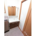 コンパクトでも洗面用具や洗濯用品がしまえます。鏡が大きいので大人二人で使用しても差し支えありません。