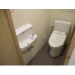 洗面台やトイレ、浴室はTOTOにて統一しました。 床のクッションフロア材や収納部表面シートは、 暖色を採用し、明るく温かみのある雰囲気にしました。