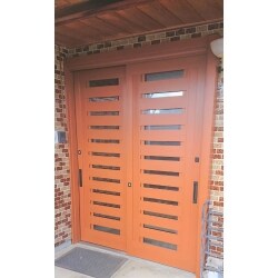 ・新しく取り替えることによって、歪みもなくなり、鍵もかかりやすくなりました。 ・引き戸の動きもスムーズになり、隙間から風が吹き込むこともなくなりました。 ・壁タイルにマッチした重厚感のある色と、光が差し込むデザインによって、明るく存在感のある玄関になりました。