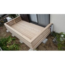 室内で飼っている犬を外に出したいので、部屋から出入りが出来るウッドデッキを造ってほしい。費用をなるべく抑えたい。