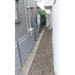 根元の腐食で倒れてしまっていた枕木を全て撤去しメッシュタイプのフェンスを設置しました。