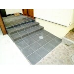 階段はポーチに似たタイルを選び、上りやすい階段に作り直しました。 駐車場も土間仕上げにし、駐車しやすくいたしました。
