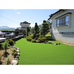 施工範囲だけでも77㎡ほどある広いお庭でしたので、細かなメンテナンスが必要な天然芝よりもメンテナンスが少なくて済む人工芝をご提案しました。人工芝の中でもリアルさを重視して商品を選定し、天然芝に劣らない見栄えになるようにしました。また、ご高齢のお母様が普段草取りをされているということで、草取りが楽になるように人工芝の下に防草シートをしっかり敷くようにしました。