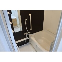 596.お掃除ラクラク!石目柄の鏡面パネルがオシャレな浴室