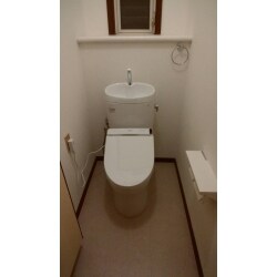 すっきりとしたデザインが特徴のトイレ。従来よりも簡単にお掃除のお手入れすることが出来ます。手洗いボウルも深く、水が飛散しにくい構造です。