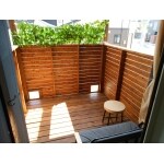 目隠しにもなり、趣味と実益を兼ねたベランダが完成しました。ワンちゃんもお気に入りの様子です。