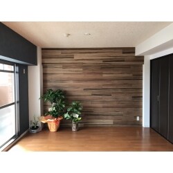 リビングをおしゃれにする為に木目調パネルをご提案致しました。