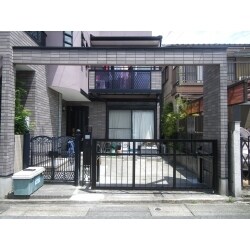 門柱を撤去し間口も少し広くして、吊り上げタイプのゲートを取付けました。