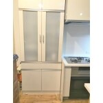 ・木製別注カップボードは半分に切断し、カウンターを乗せて 調理台カウンター収納に変更。