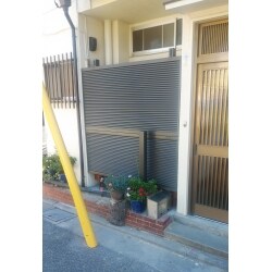 木製の目隠しを撤去しアルミ製のフェンスを設置しました。 目隠ししながら通風できるルーバータイプでスッキリした空間に仕上がりました。新設したフェンスの内側は、洗濯機置場になっております。台の上に洗濯機を置いて使用していましたが、落下を気にせず使用できるように床を新設しました。
