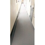 下地調整の後、長尺塩ビシートを貼りました。耐久性・遮音性・防水性にすぐれ、見た目にも美しい仕上がりになりました。遮音性の高さから、足音等が響きにくいのでマンションの廊下や階段に最適です。