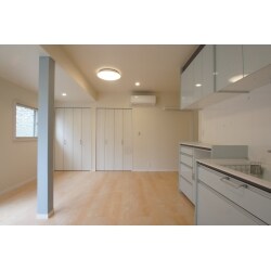 個室を北側に、日当たりの良い南側にLDKを配置。 将来的にお風呂の介助等が必要になった際、暖かなリビングから洗面、お風呂へと行けるよう水回りの位置も変えました。 ウォークインクローゼットも二人分設置し、それぞれが快適にスッキリと暮らせるリノベーションをご提案しました。